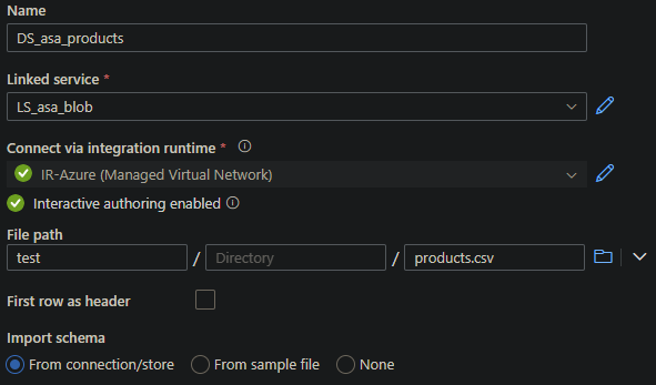 Repeat these steps, but for the Azure Blob storage instead of for an Azure SQL Database, and choose a DelimitedText format.