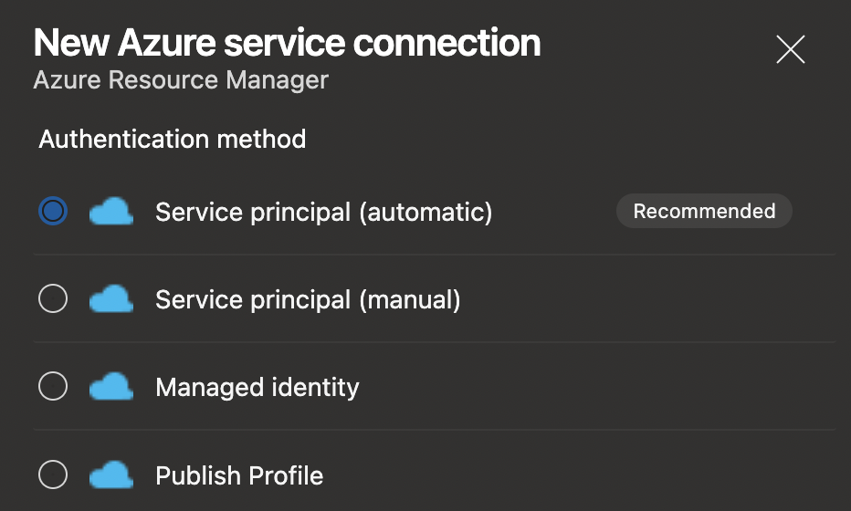 Choose the Service principal (Automatic) and continue.