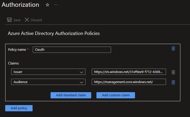 NOTE: Instead of the https://sts.windows.net/ this could also be https://login.microsoftonline.com/, this is something that needs to be checked with an access token generated from your AD.