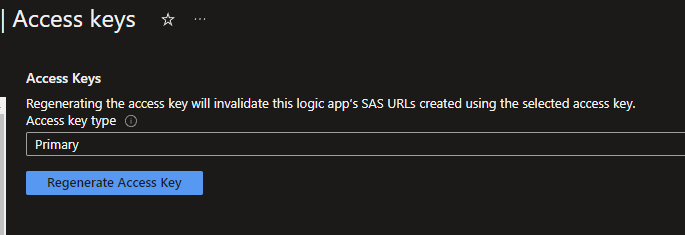 - sig: SignatureSAS is already a security methode that is inplace by default, but not always seen as the most secure. If you copy the URL from the Logic App itself, you will have all the attributes already to authenticate to it. The signature can always be resetted when needed via the Azure portal by going to the Access keys tab underneath the Settings category within your Logic App itself.