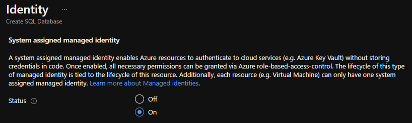 This will generate an Identity (Azure Active Directory Object) for the Azure SQL Server, which we can use later within the process.