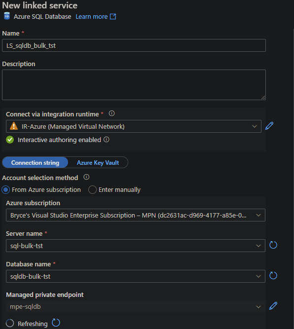 Select the IR you've just created. You will see a Managed private endpoint option appear underneath the database name. Click on it to configure it for the Azure SQL database.