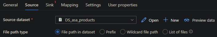 Click on the Copy Data component on the canvas and go to the Source Tab. Select your Azure Storage Account Dataset.