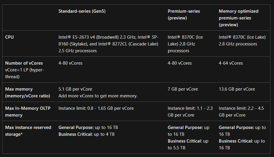 There is an exception within the vCore-based model, which is Hyperscale. Hyperscale allows for rapid scaling of your database and has fully separated CPU, Memory, I/O and Storage. This means that the CPU power could come from a different rack in Microsoft's datacenter than where the memory comes from, while still granting the same performance you'd get if all the components were placed in the same physical server. A Hyperscale database allows for 100TB of storage, but with some trade offs on functionality.