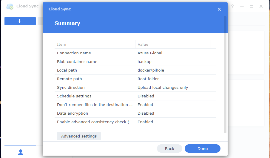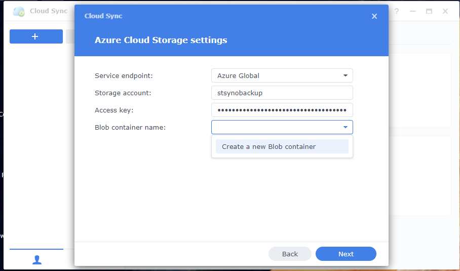 With this you are set for backing up to Azure from your Synology!