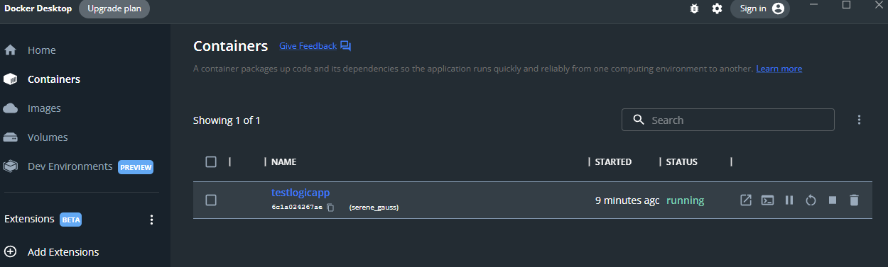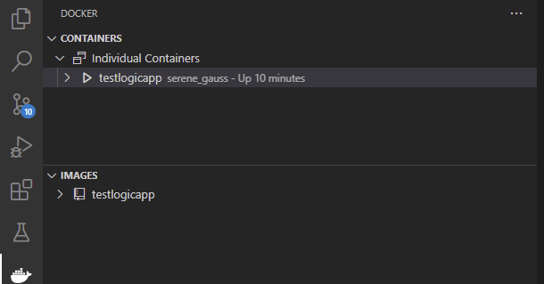 docker run -p 8080:80 testlogicappWith the VS Code docker extension you can see it running locally, as well as if you open Docker Desktop.