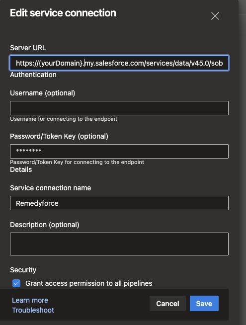 serviceConnection: Remedyforce