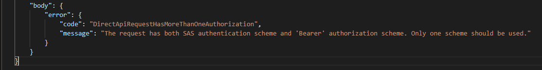 But if we can use Azure AD OAuth, this will be the preffered option. But in order to use the Azure AD OAuth we need to disable the SAS. This can easly be done by leaving out the SAS part in the Endpoints URL. If you don't do this or forget it, this will result in an error.