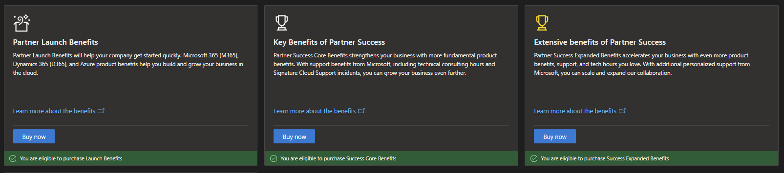 'The Partner Launch Benefits' is your introductory package when you start with Microsoft. It offers basic tools and products to help set up your business in the Microsoft ecosystem.